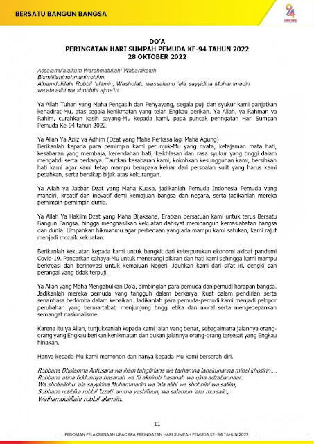 PEDOMAN PELAKSANAAN UPACARA PERINGATAN HARI SUMPAH PEMUDA ke-94 2022